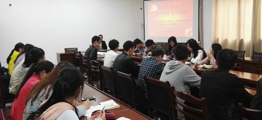 会议室,院团委书记周爱军结合时事热点,传达了习总书记视察中国政法大学讲话精神,引用习总书记讲话号召“青年要立志做大事,而不是立志做大官”。希望同学们不断提高综合素养能力学会思考,善于分析,正确抉择,做到稳重自持,从容自信,坚定自励。