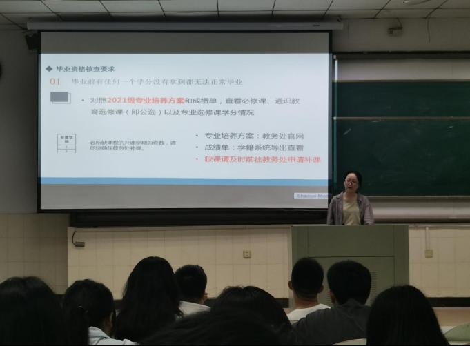 会上,钱丹丹围绕安全问题,提醒学生们提高防范意识,注意人身安全。同时提醒同学们对照专业培养方案,提前做好毕业资格核查。立足当下、踏踏实实做好学习规划,以良好姿态迎接每日生活。任静详细介绍了AG真人视讯 的就业招聘日程和相关就业政策,鼓励学生们要努力提升自身能力与技能,在准备考研的同时,不断了解当前的就业形势,多方位寻求合适工作,实现多元化就业。