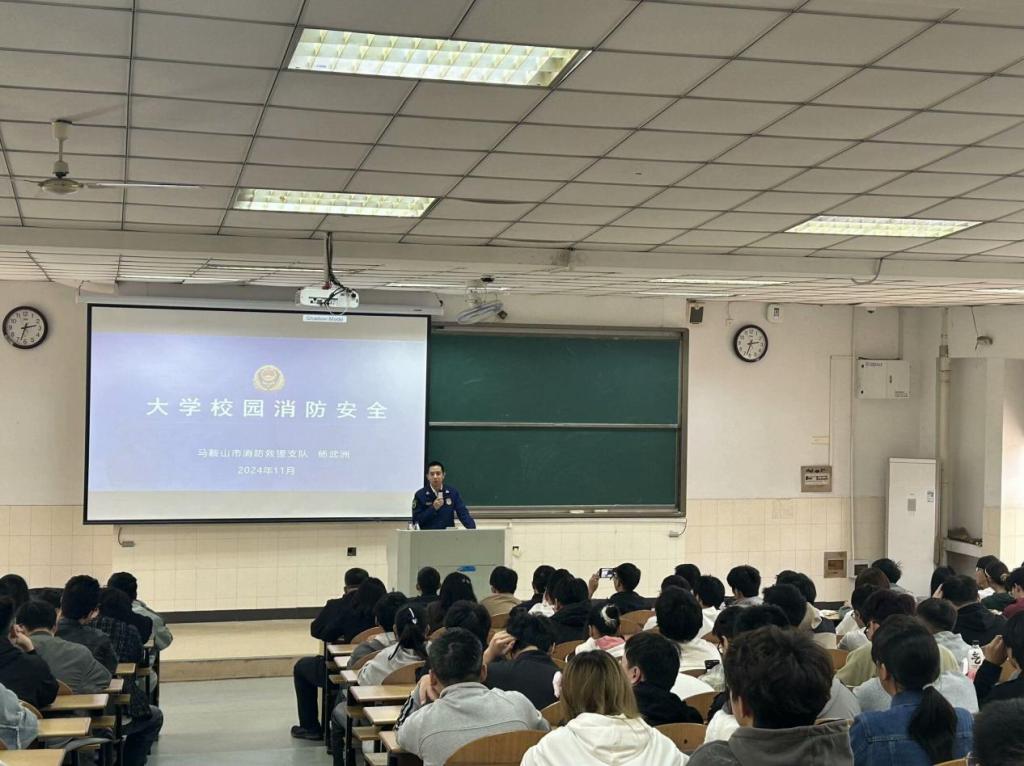 于东阶202开展消防安全知识专题讲座,马鞍山市消防救援支队工程师杨武洲主讲,AG真人视讯