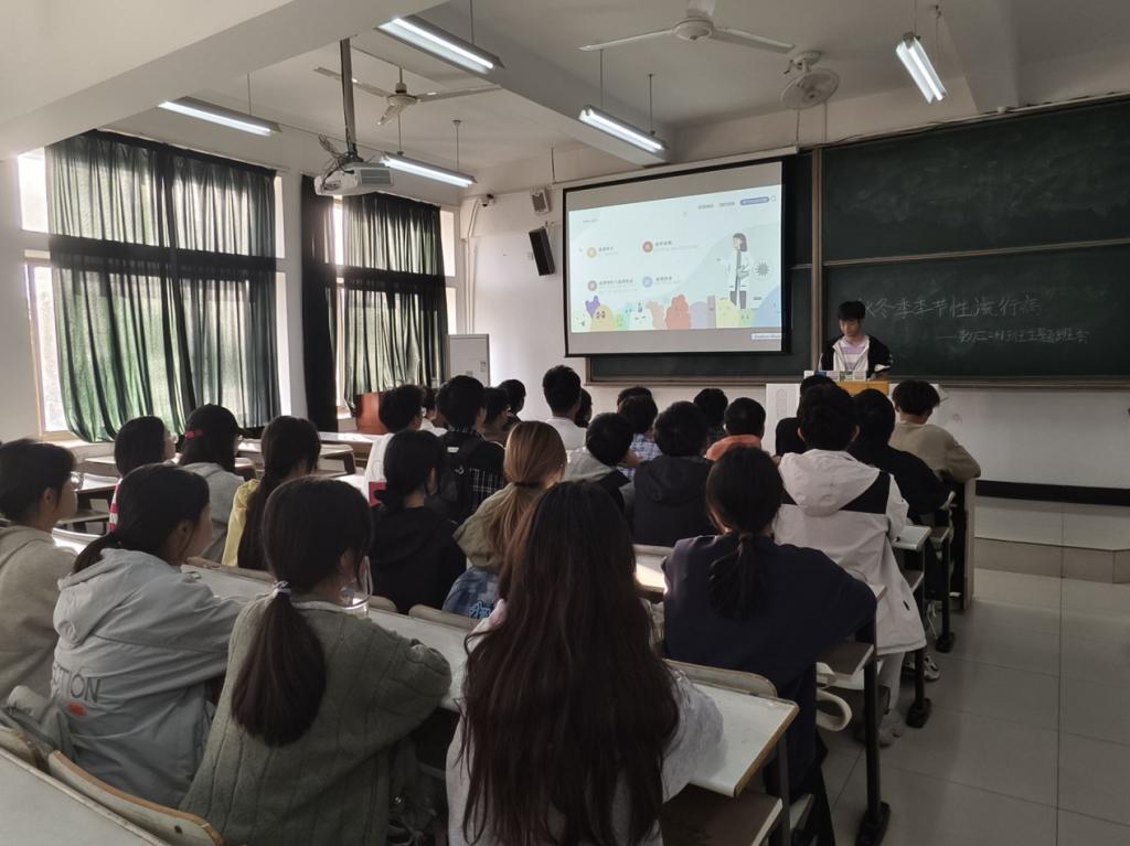 主题班会上,各班生活委员围绕个人卫生、环境卫生、食品卫生、病毒防控等方面知识进行了科普宣讲,通过PPT课件、交流体会、视频观看等方式呼吁同学们要加强对卫生健康的重视。其中,班会重点介绍了秋冬季节传染病的发病特点、传播途径以及预防措施,展示了正确的洗手步骤和口罩佩戴方法,强调了保持个人卫生和增强体质的重要性。在交流讨论环节,同学们纷纷表示,要保持良好的生活习惯,勤洗手、多通风、戴口罩,同时还要加强体育锻炼,提高自身免疫力,在接下来的体质测试中争取优异成绩。