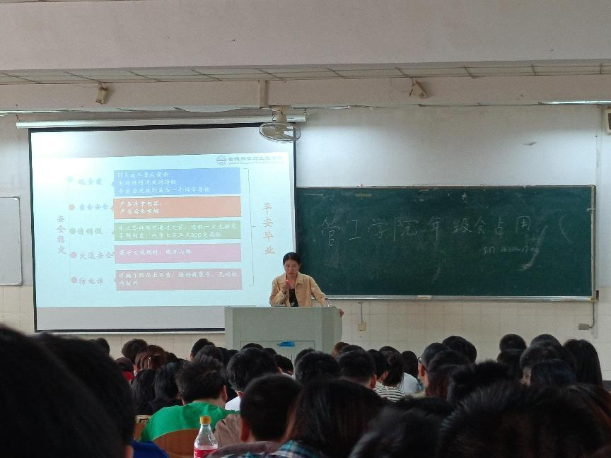 李军慧围绕毕业班工作展开讲解。一是引导同学们认清当前的就业形势,形成先就业再择业的观念,善于利用周边资源,提高主动性,把握好机会。二是进一步强调校园安全稳定工作,引导广大同学提高安全意识,严格遵守AG真人视讯