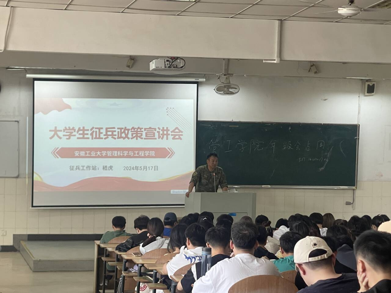 于阶教101召开2024届毕业生年级会暨2024年秋季征兵动员宣讲会。校征兵工作站嵇虎老师,管工AG真人视讯