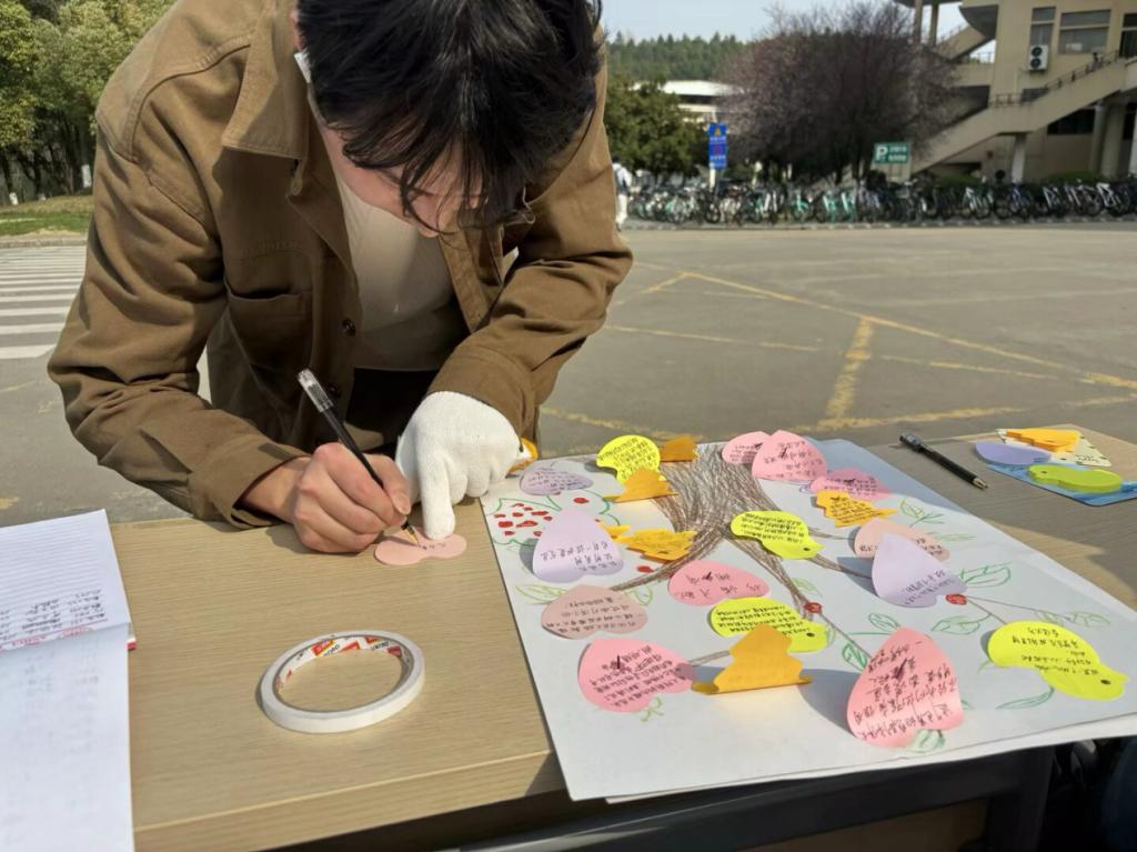 “把雷锋精神‘种’进春天,共赴心灵与生命之约”的主题实践活动旨在让同学们懂得敬畏生命、珍惜时光。活动中,同学们热情高涨,翻土、播种、浇水,亲身体验生命孕育的过程。在制作“环保树”环节,写满环保标语和深刻感悟的贴纸贴满树木,让环保理念深深扎根于同学们心中。认领种子与“21天打卡记录”活动,更让同学们开启了一段陪伴生命成长的奇妙旅程。数应244班的过声雪同学说:“照顾种子让我懂得了责任的重大,这是一次难忘的体验。”活动以种植为切入点,将雷锋精神、环保与生命教育有机融合,让同学们认识到生命的可贵,进一步增强了他们内心的责任感与敬畏感。
