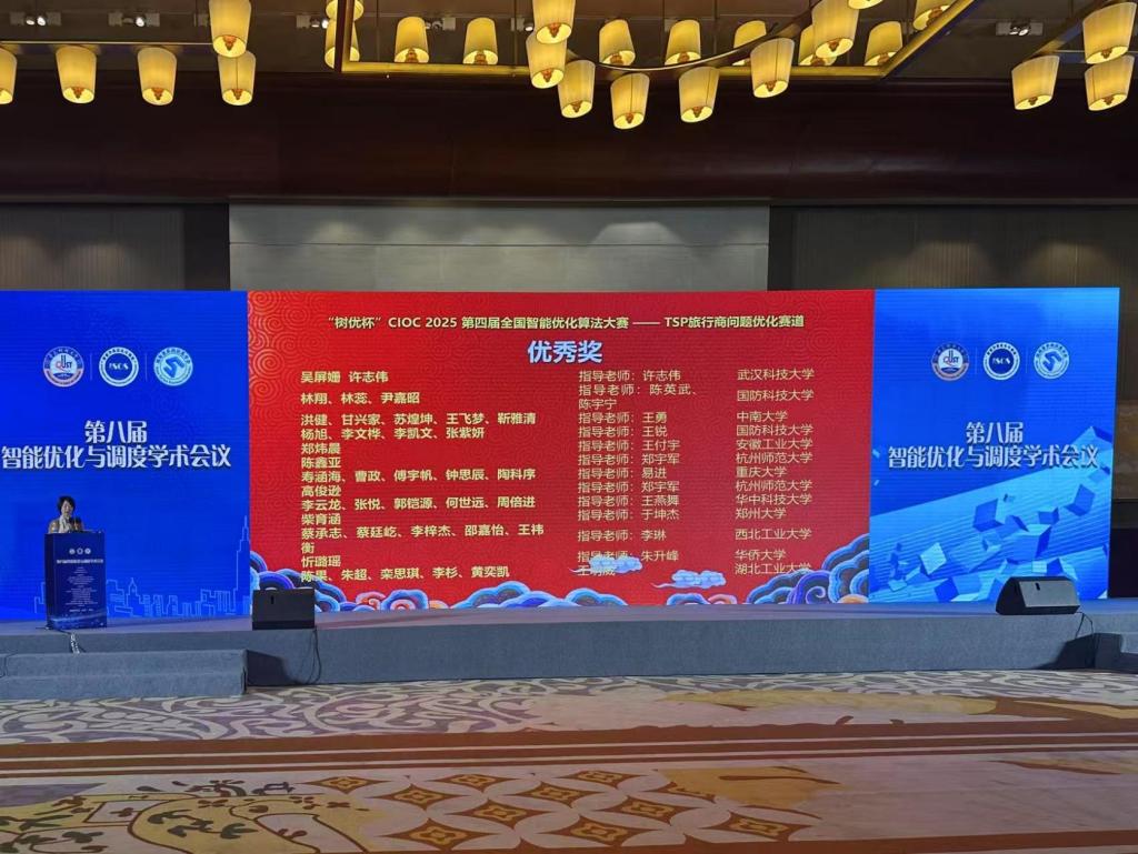 研究生周鑫鑫、郑炜晨、黄阿龙组成的参赛团队,历经初赛算法性能测评、决赛评审和现场算法创新性汇报,最终在柔性车间调度优化赛道中荣获全国二等奖;郑炜晨同学同时获旅行商问题优化赛道优秀奖。