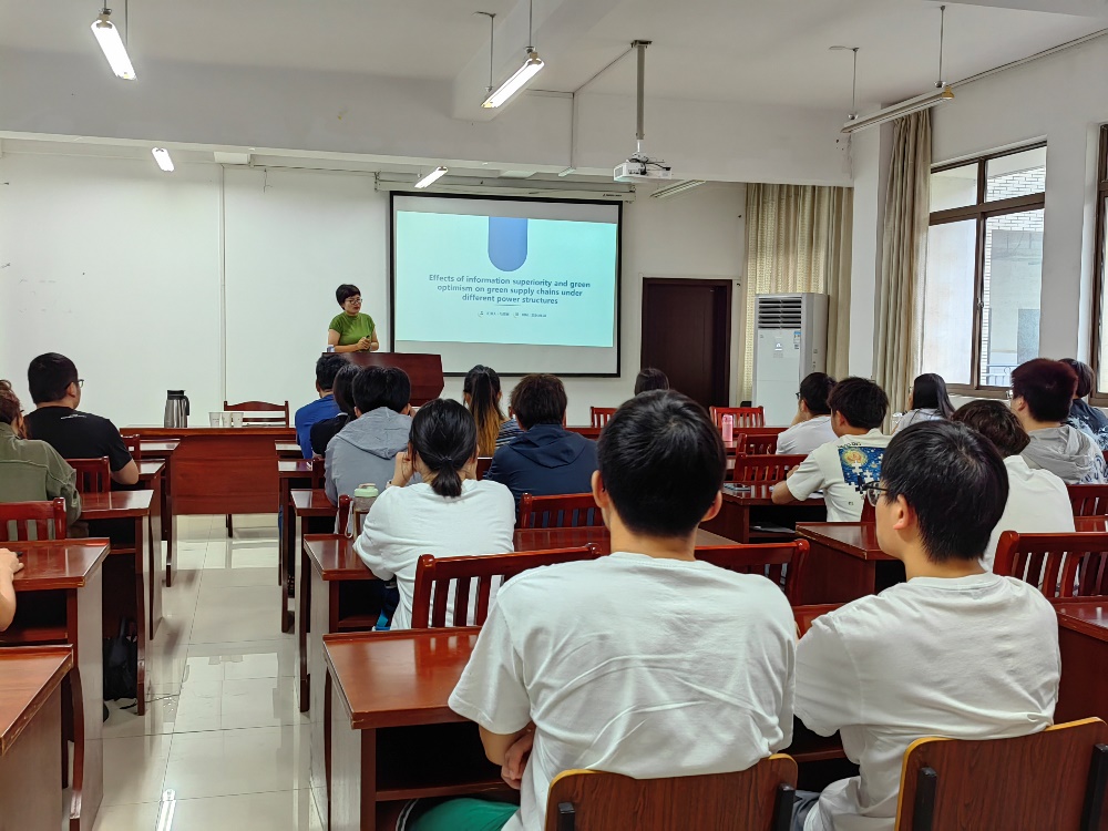 报告中,马雪丽教授首先提出了科研重点:确定研究方向、理论结合实践、扎实基本技能和发表高水平论文;其次,从结构、模型、图表展开,详细论述了不同权利结构下,信息优势和绿色乐观主义等因素对绿色供应链的影响,为制造商主导和零售商主导的绿色偏好协调提出了切实可行的解决方案;最后,马雪丽教授提出了该领域的未来研究方向,并分享了投稿中的经验和技巧。