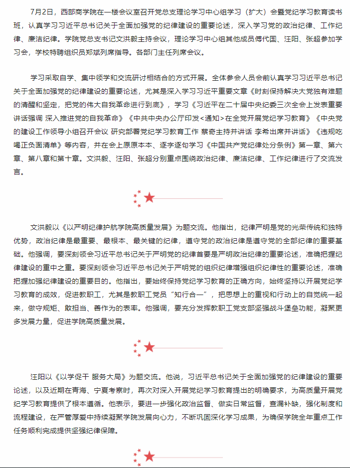 AG真人视讯 开展理论学习中心组学习(扩大)会暨党纪学习教育读书班